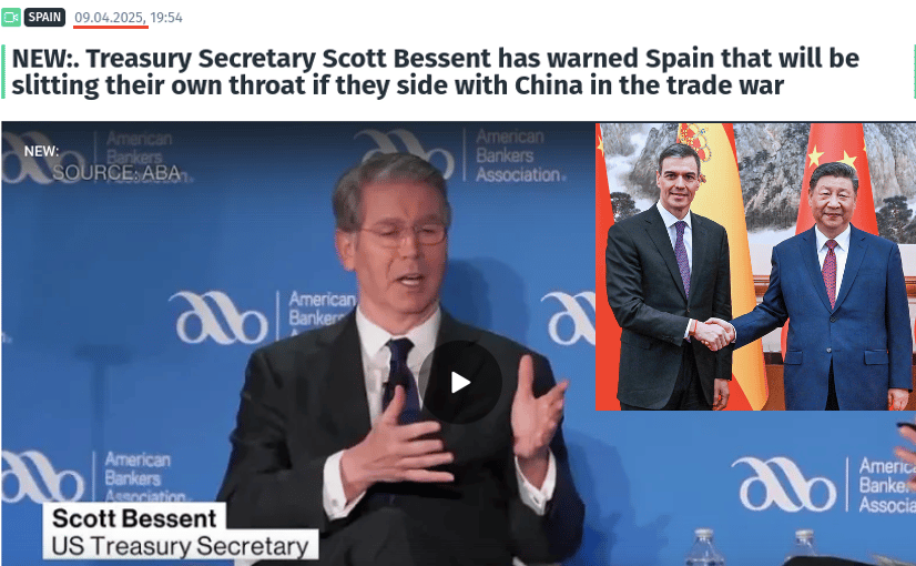 El secretario del Tesoro Scott Bessent llegó a advertir a España que alinearse con China en la guerra comercial sería como “cortarse la garganta a uno mismo”.