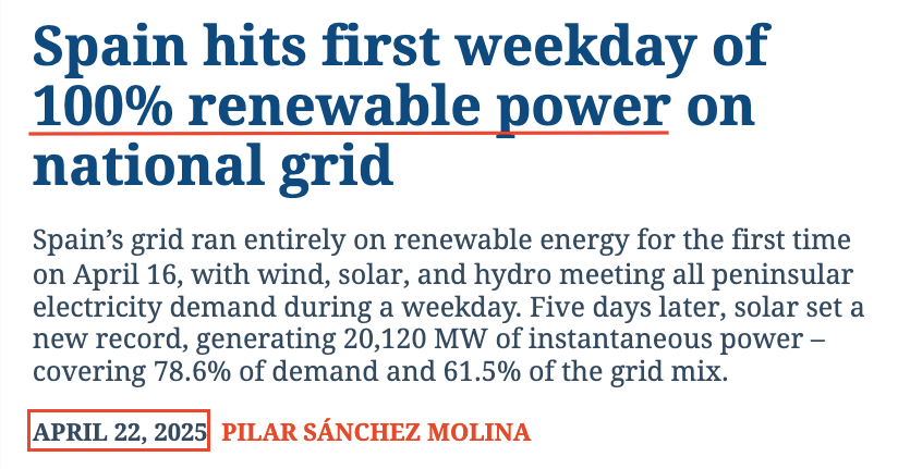 Se publicaba el 22 de abril que se había conseguido funcionar con el 100% de energía renovable.