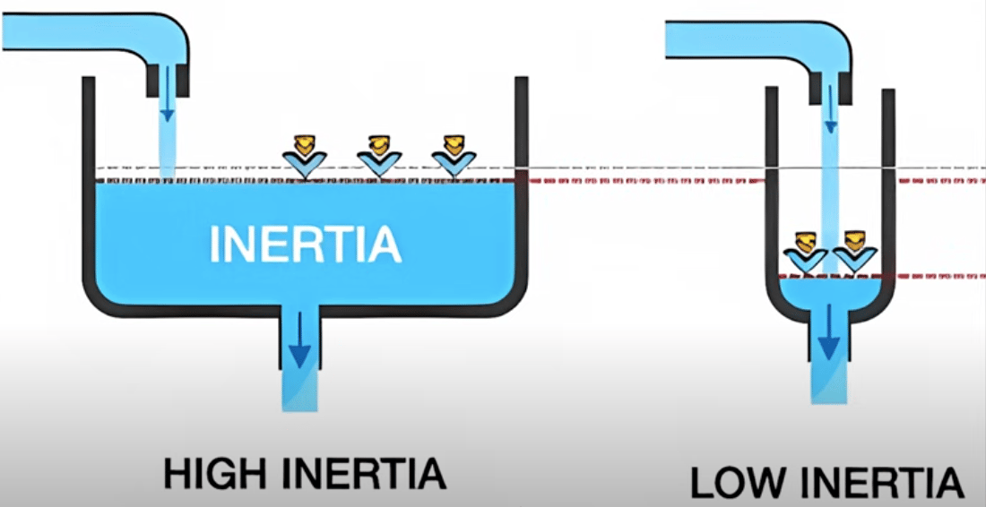 Al contrario que las centrales térmicas o nucleares, los sistemas basados en fuentes solares y eólicas no cuentan con masa mecánica giratoria que provea a la red de esa inercia.