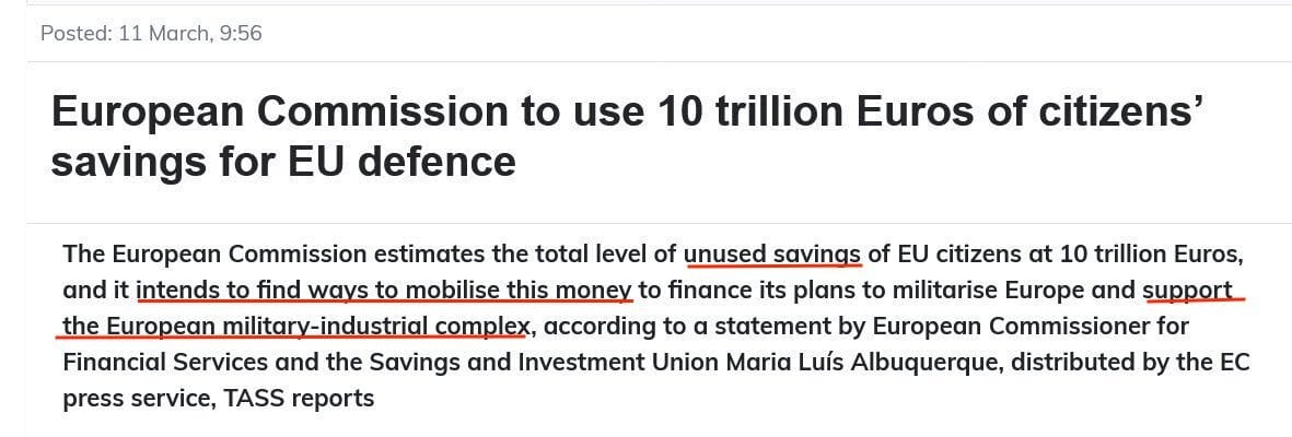 Algún iluminado en Europa considera que los ahorros de los ciudadanos podrían usarse mejor en comprar armas…