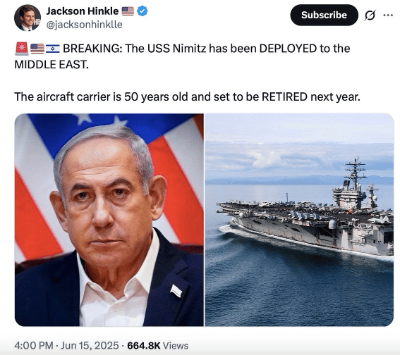 PD2: Está previsto el USS Nimitz llegue a las costas iraníes el domingo, justo en el solsticio.