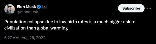 Elon Musk cree que la despoblación es un problema mayor para la civilización que el calentamiento global.