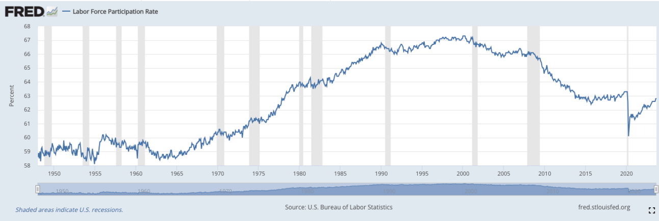 La Tasa de Participación de la Fuerza Laboral es el porcentaje de la población que está trabajando o buscando trabajo activamente”.