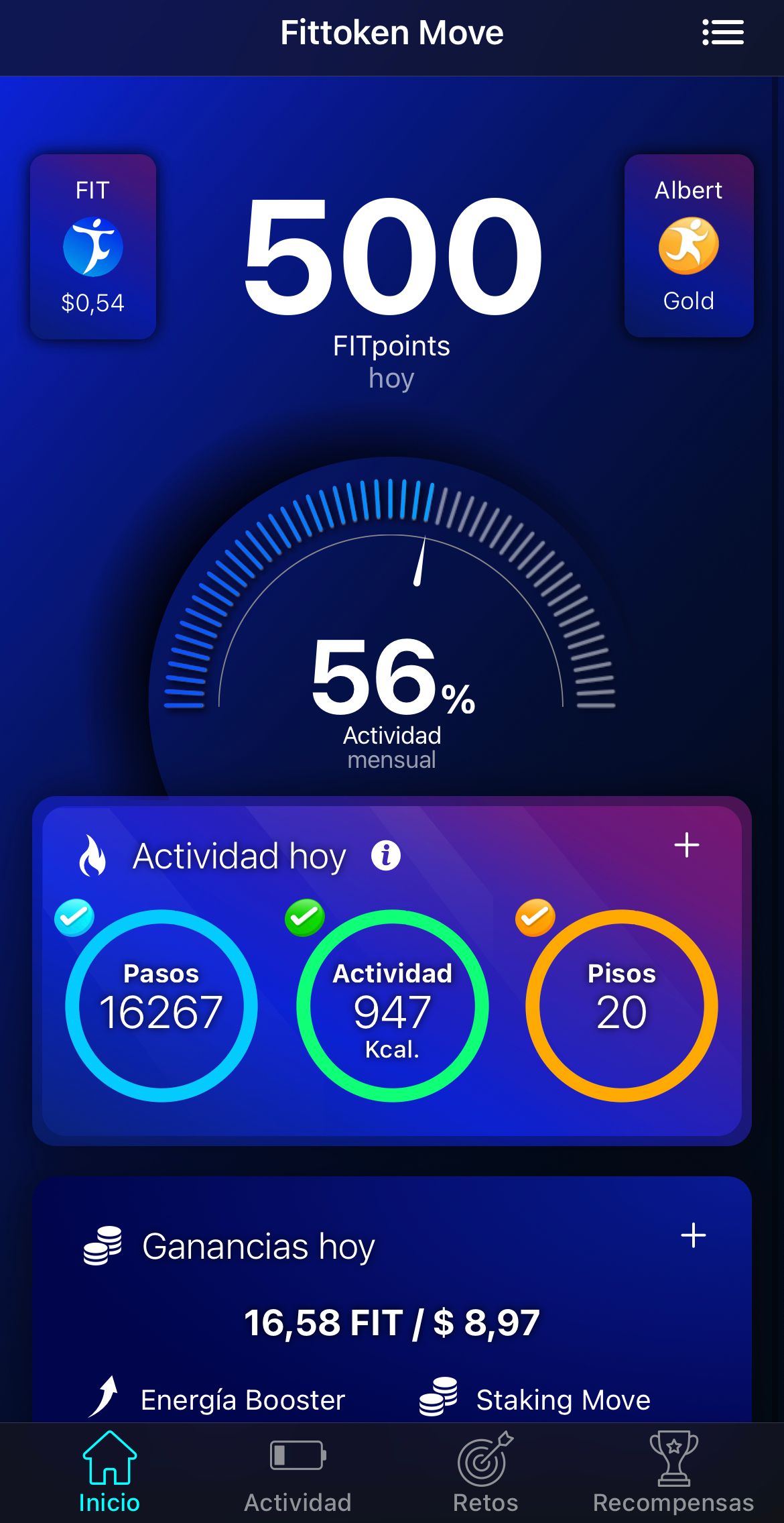 El objetivo es que consigas tener una vida más activa. El objetivo no es sacar un rédito económico. Recuerda que la volatilidad puede hacer apreciar o depreciar el token. Pero jugarse la piel ayuda, digamos que cuanto más te cueste levantar el culo del sofá, más tokens deberás stakear para motivarte a cumplir los objetivos de actividad diaria.