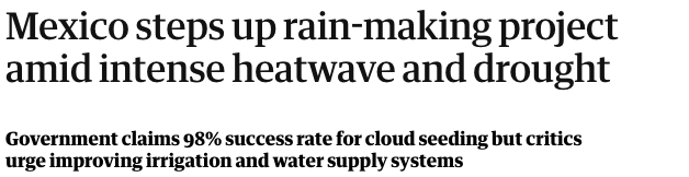 Otros medios como The Guardian en 2023 publicaba que “México intensifica el proyecto para generar lluvia en medio de una intensa ola de calor y sequía”.
