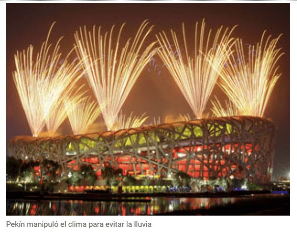 Pero si vamos a la prensa tradicional o mainstream también vemos menciones (como si nada) a la manipulación artificial del clima. Ya en 2008, El Confidencial informaba que Pekín manipuló el clima para evitar la lluvia durante la celebración de los Juegos Olímpicos.